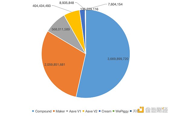 DeFi借贷平台借款占比,金色财经制图, 数据来源:Debank