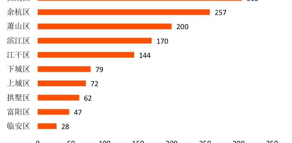 从杭州市各地区区块链企业的注册数量来看,西湖区、余杭区和萧山区是区块链企业的主要选择,三个地区的区块链企业注册数量分别为305家、257家和200家。这与三个地区区块链产业园发展较为活跃的情况一致,政策扶持、产业化集聚程度等都是吸引区块链企业在这些地区落户的重要因素。