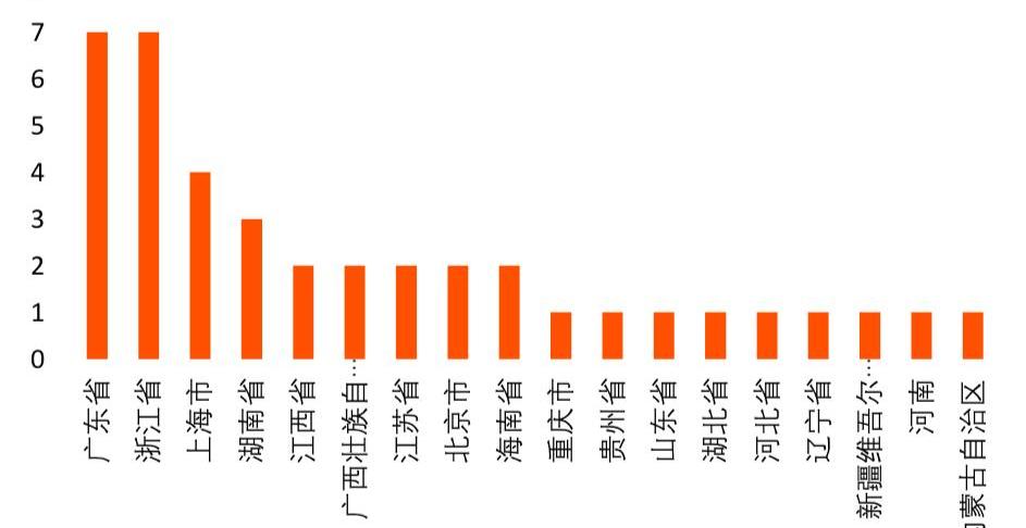 据零壹智库不完全统计,截止目前,全国的区块链产业园共有40家,从地域分布来看,其中广东省和浙江省都已有7家区块链产业园,领先于其他省份;从城市分布来看,广州和杭州都各有6家,在全国各城市中也是居于领先地位,上海市共有4家区块链产业园,紧随在广州和杭州之后。
