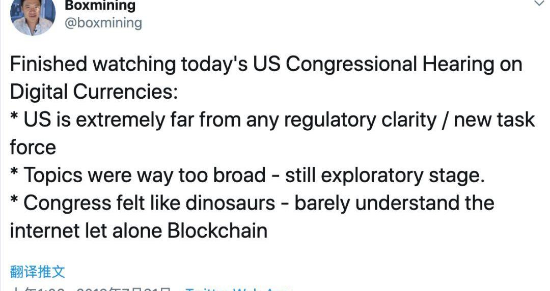 币圈知名KOLBoxmining谈美国会加密货币听证会: