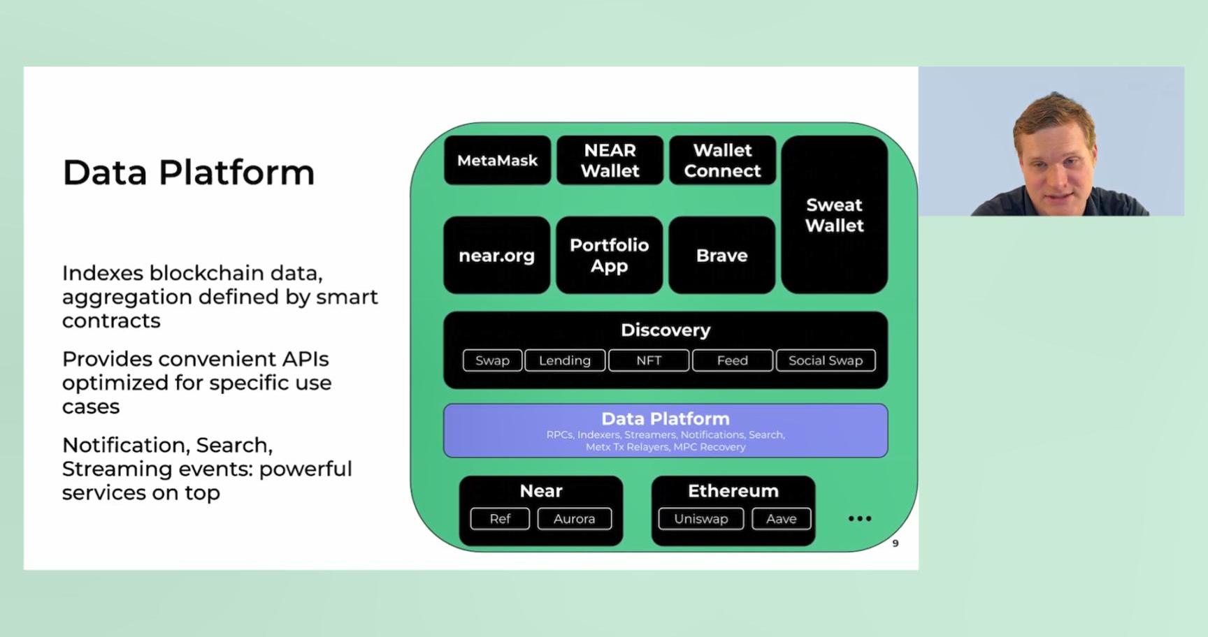 另一部分是我之前提到的数据平台架构。这是很重要的一部分,实际上是将一些逻辑带到了智能合约,比如数据如何被前端访问,因为目前数据如何在链上存储与数据如何被程序使用之间存在脱节。为此我们设计了一种叫做QueryAPI的协议,允许任何人运行索引器,对于开发人员和用户来说,使用哪个服务提供商的转换成本为零。