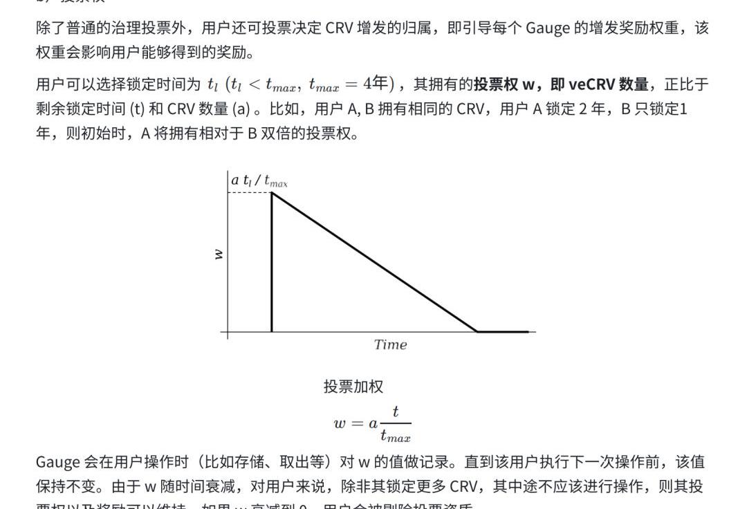 3)ve的投票权重随时间递减,治理权得以自然流动