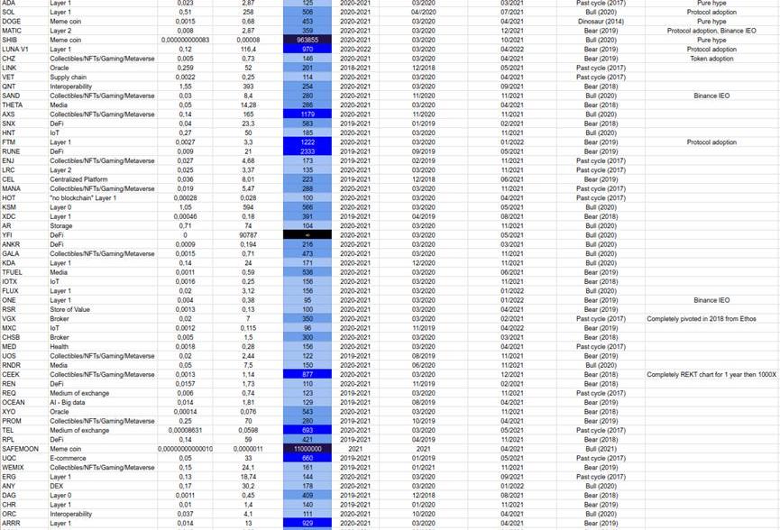对于那些想知道的人来说,这些是我在CMC前300名中发现的过去周期的百倍币,时间截至22年9月。