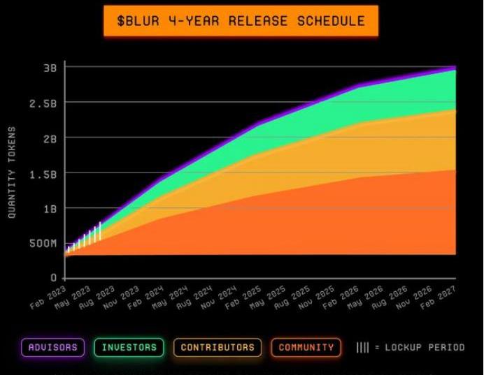 而到今年11月时,Blur诞生的第二年到来,社区金库又可增加3.51亿枚BLUR。