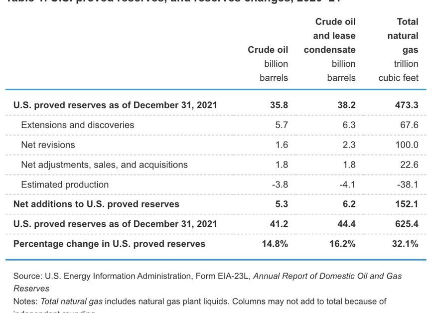 2021年年底的页岩储量:393.8万亿立方英尺