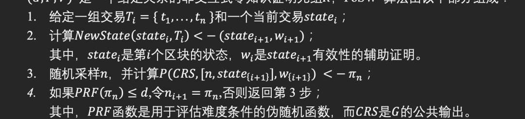 Aleo的区块链网络共识机制由基于SNARK的简洁工作证明提供。PoSW是bitcoin基于SHA挖矿难度调整机制的变体,其主要区别在于其底层计算不是哈希函数,而是知识证明。
