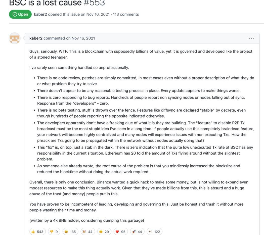 一个臭名昭著的GitHub问题引发了关于运行BSC全节点的体验