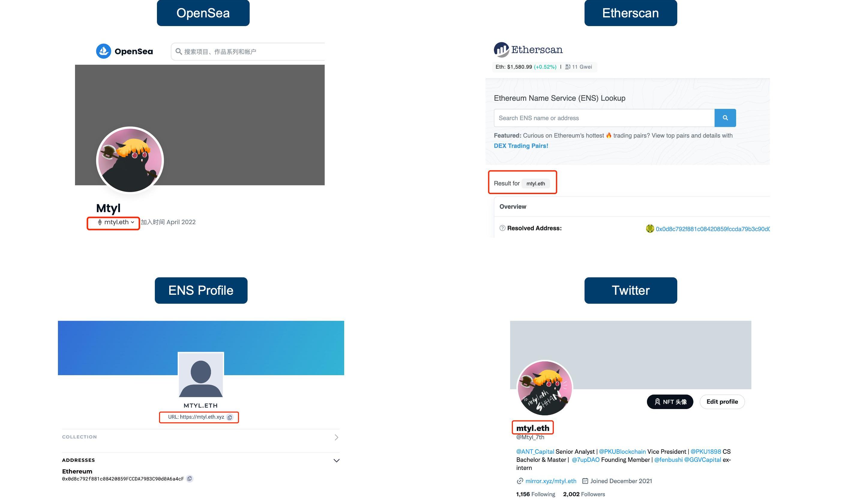 只需一个mtyl.eth域名,就可以在Web3相关的各个平台找到笔者