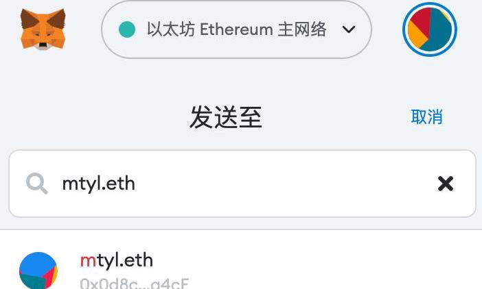 如果你希望给笔者通过链上转账进行打赏支持,无需笔者在这里展示具体的钱包地址,你可以直接在“发送”的目标地址栏中输入“mtyl.eth”,就可以找到对应的地址来进行操作。