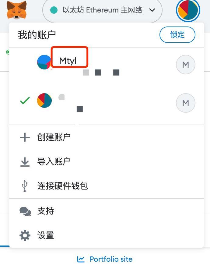 还是以Metamask为例,用户的每一个Metamask账号,都可以建立不同的子账户;而不同子账户在不同的链上,有不一样的地址。这个子账户管理就在浏览器插件的右上角上,如下图锁所示: