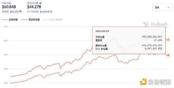 DeFi项目锁定资产前十排名及锁仓量,数据来源:Debank