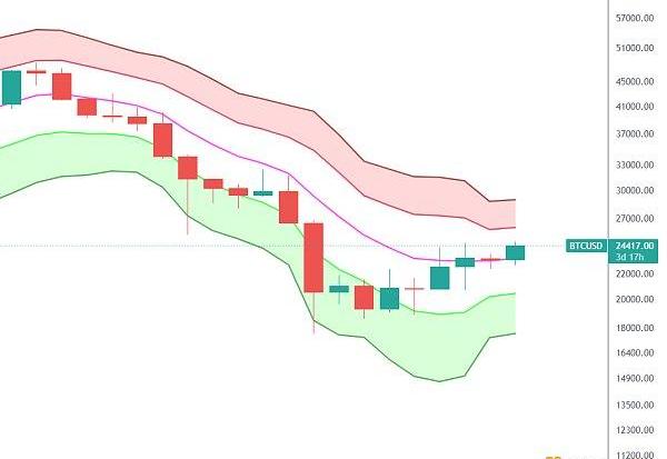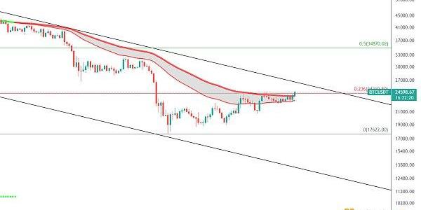 BTC多次向上试探后开始突破,短期支撑23700-23800,站稳不破后续有望继续上攻,短期压力25000-25100,一旦突破后续压力26000上方,周线重新站上中轨,前期高位跌破单边下跌行情启动,目前重新站上,后续反弹有望延续。