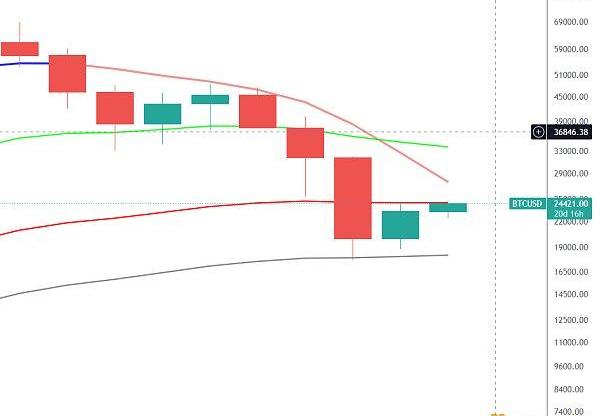 8.10BTC行情分析 被盘面诱多了,昨日画门下跌没有反弹,直到晚间插针下跌后才走出一波小反弹,早间又延续空头走势跌至22650附近,小时级别来看行情暂时止跌反弹.