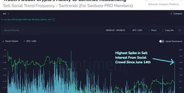 Santiment的最新分析之一也支持这一点。报告显示,Twitter、Reddit和Discord等社交媒体平台上的“卖出”提及次数已达到2个月以来的最高点。根据分析平台,